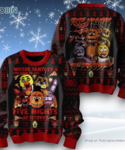 Where Fantasy & Fun Coome To Life Five Nights At Freddy's Ugly Christmas Sweater and Sweatshirt details