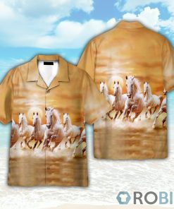 White Horses Running On Sunset Hawaiian Shirt features