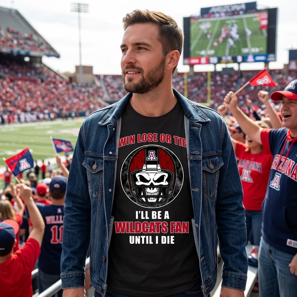 Win Lose Or Tie Until I Die I’ll Be A Fan Arizona Wildcats Navy Unisex Shirt