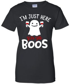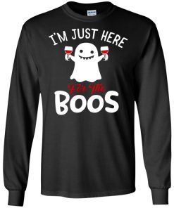 Wine I’m just here for the boos shirt. Buy it now, from $19.99 and $3.99 shipping. This shirt available in t shirt, long sleeve, hoodie and multiple color.