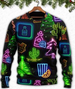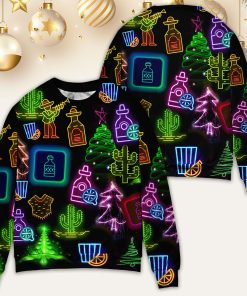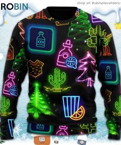 Wine Tequila Christmas Neon Art Drinking Christmas Ugly Sweater, Sweatshirt details