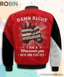Wisconsin Badgers Damn Right I Am Wisconsin Fan Now And Forever Bomber Jacket