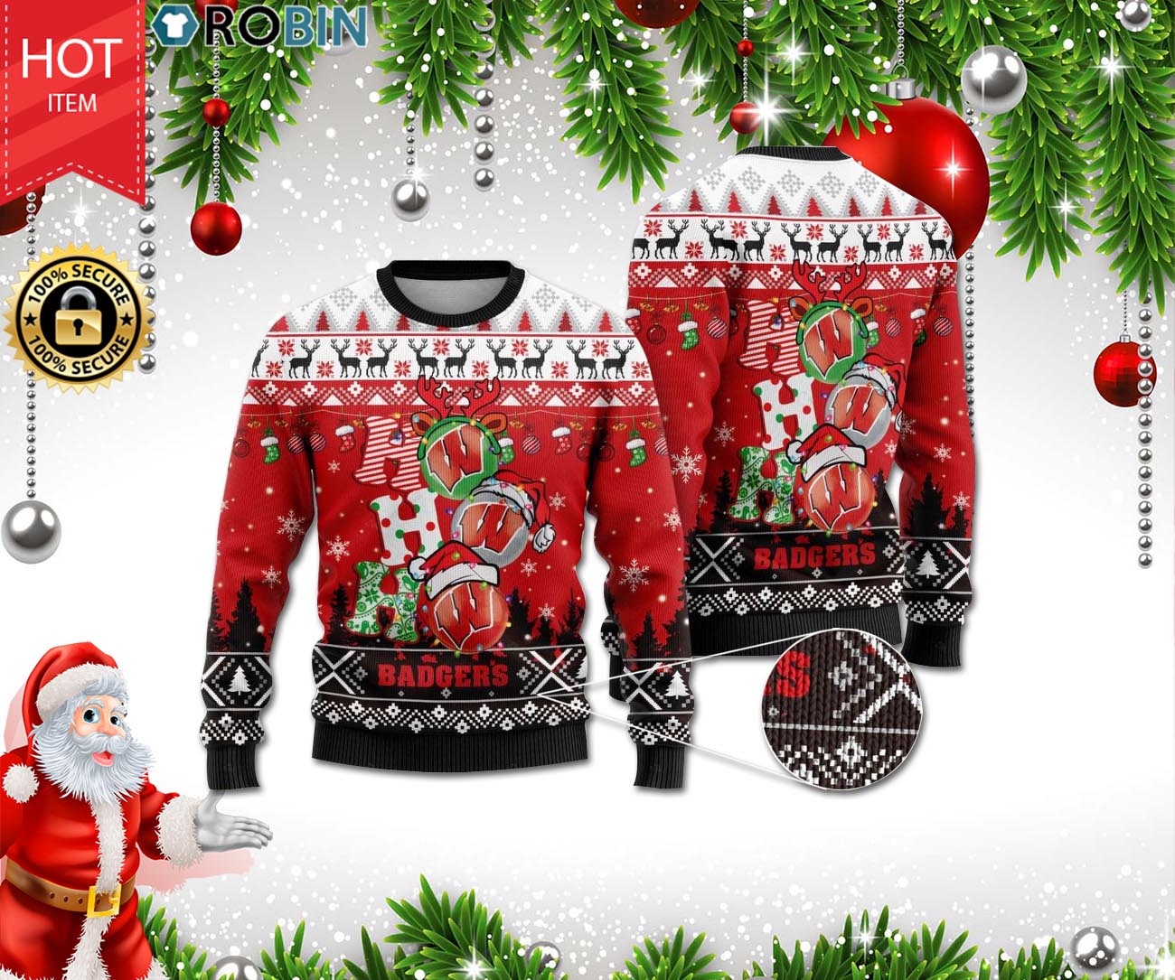 Wisconsin Badgers Ho Ho Ho 3D Print Christmas Wool Sweater