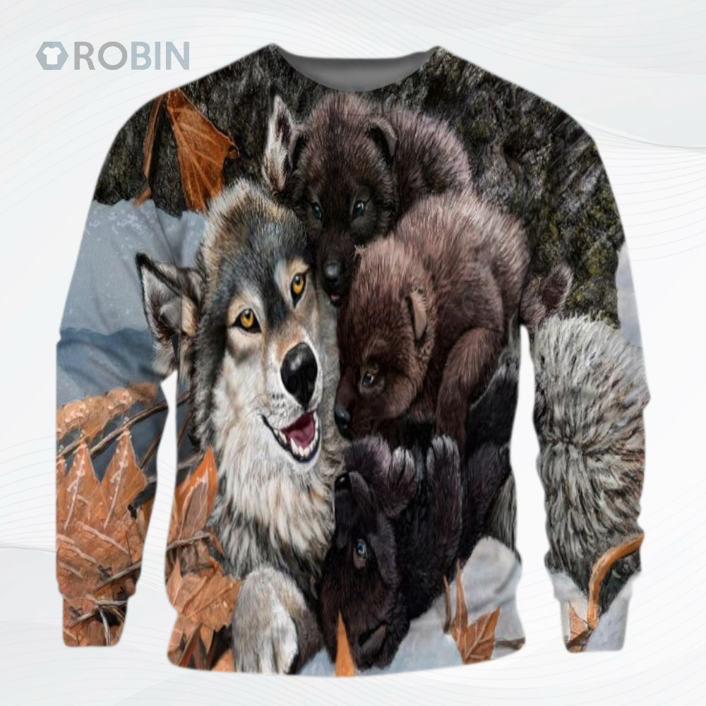 Gather around and feel the warmth of a wolf family nestled in a snowy forest, surrounded by autumn leaves. This charming design captures the heartwarming bond of wolves, symbolizing unity and protection. Perfect for cozy winter nights or festive gatherings, it’s a piece that tells a tale of togetherness and nature’s beauty. Ready to make it yours? Add this unique sweater to your holiday collection now!