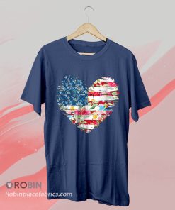 Womens 4th Of July Shirt American Flag Floral Heart T-Shirt & Hoodie images