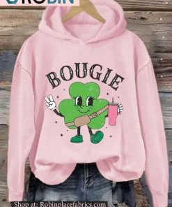 Womens St Patricks Day Bougie Shamrock Print Hoodie details