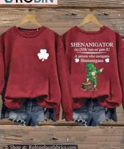 Womens St Patricks Day Shenanigator A Person Who Instigates Shenanigans Printed Sweatshirt details
