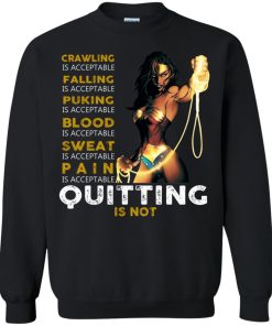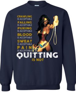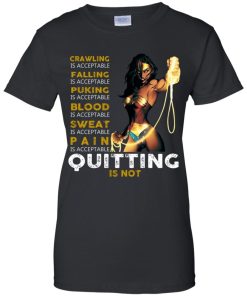 Crawling is acceptable falling is acceptable puking is acceptable blood is acceptable sweat is acceptable pain is acceptable quitting is not shirt.
