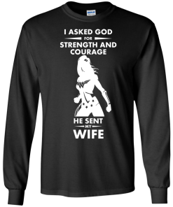 Wonder Woman: I Asked God For Strength And Courage He Sent My Wife Tshirt, Tank, Hoodie, Long Sleeve available