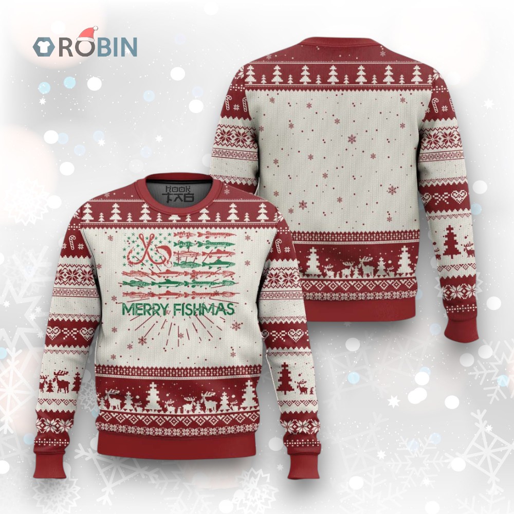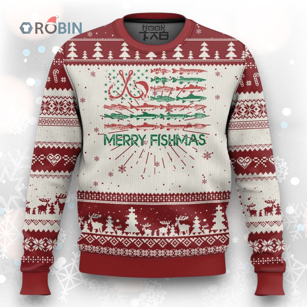 Reel in some holiday cheer with this fun and festive sweater! Perfect for the fisherman in your life, it's a quirky way to celebrate Christmas and show off some patriotic pride. Get ready for some Merry Fishmas laughs!