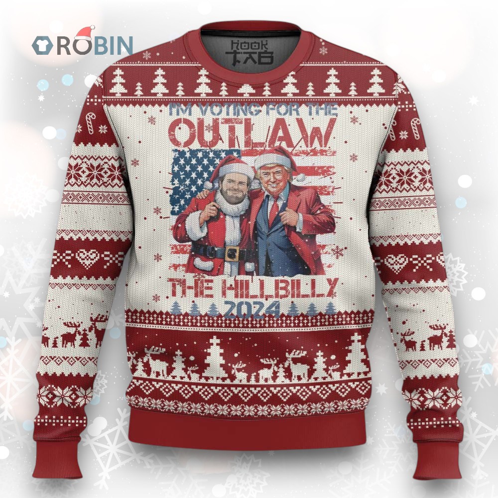Rock this holiday season with the ultimate statement piece! Show your support for Trump and Vance in 2024 with this eye-catching sweater. Get yours now and let everyone know who you're backing! Limited quantities available.
