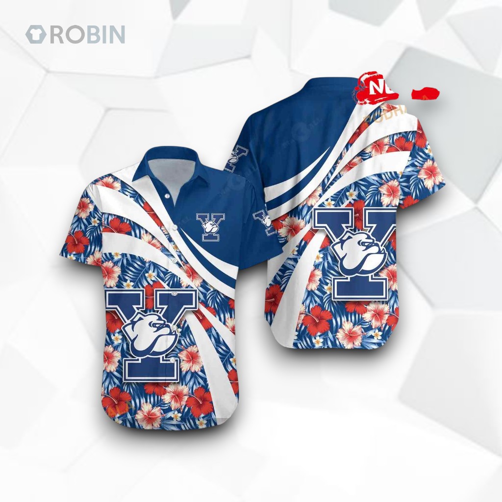 If you’re a Yale fan who’s tired of the usual blue and white gear and want something a bit more fun and laid-back, this Yale Bulldogs hibiscus shirt might be right up your alley. It’s got that classic Yale vibe with the big blocky “Y” logo and the bulldog mascot, but then throws in bright hibiscus flowers and diagonal stripes that give it a tropical, almost Hawaiian shirt feel. The mix of sporty and playful really nails that casual, off-the-field energy. I can totally see this working for alumni who want to show some school pride without being too serious about it, or for current students who want a break from the standard campus merch. It’s also an easy pick for game day if you want to stand out in a crowd but still rep the Bulldogs. Plus, it’s great for summer hangouts, vacations, or even just chilling with friends when you want something comfortable with a bit of personality. Honestly, it’s one of those shirts that might surprise you by how often you reach for it once you have it. If you know someone who fits the Yale fan profile and also likes a touch of humor and tropical style in their wardrobe, this could be a neat little find to share around. The Yale Bulldogs hibiscus shirt strikes a nice balance—the energy is there, but it’s not over the top, making it a fun nod to the team without feeling like you’re wearing a jersey.