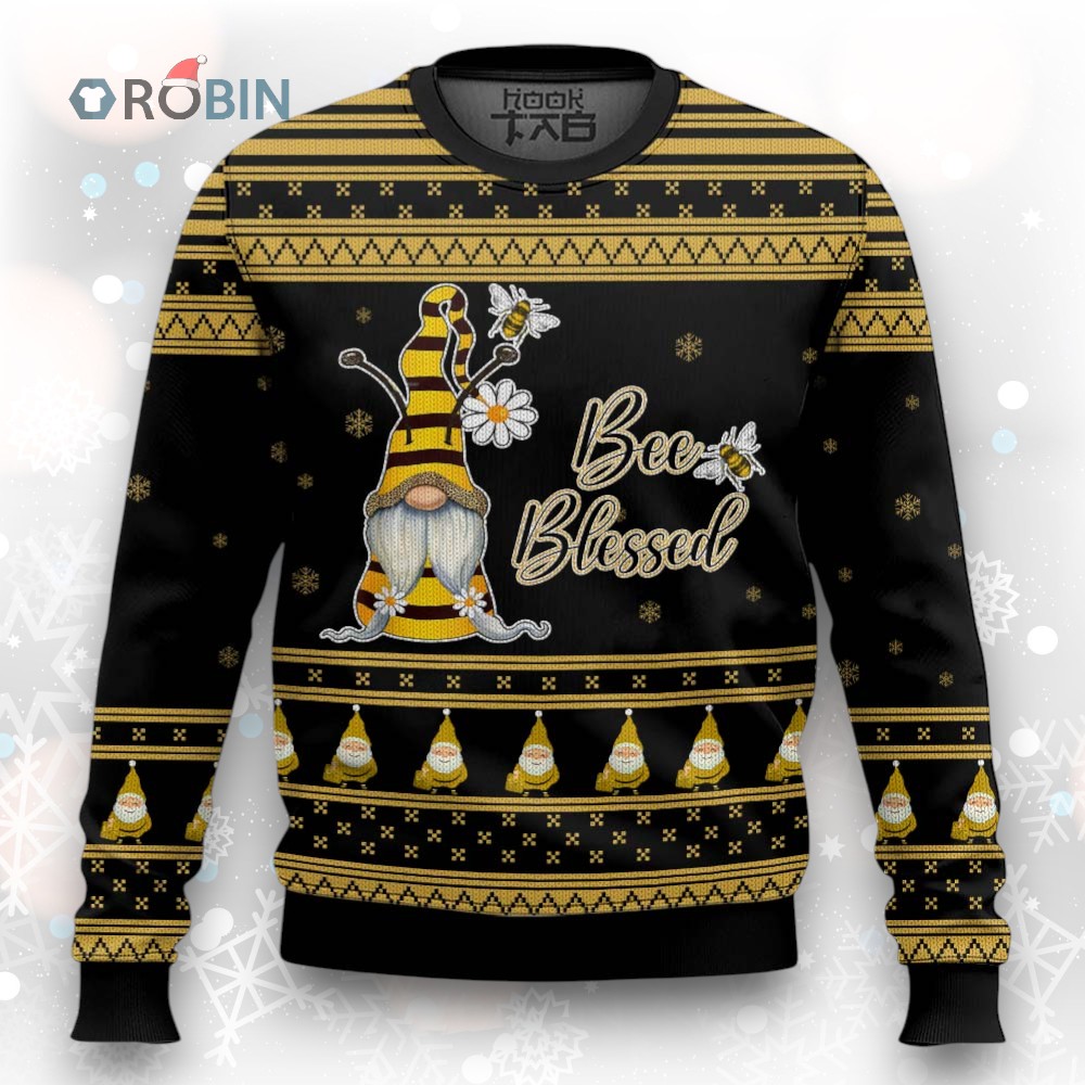 Buzz into the holidays with this charming gnome sweater! Featuring a delightful yellow and black design with floral accents, it's the perfect quirky Christmas gift. Get ready to bee blessed with smiles this festive season! 🐝🎄