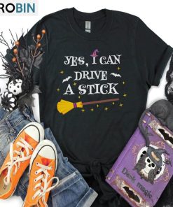 The Yes I Can Drive A Stick Halloween Shirt is a fun and catchy sweatshirt that is perfect for the Halloween season. With its short sleeve design, it offers a comfortable and relaxed fit. The shirt features a playful phrase, Yes I can drive a stick, which adds a humorous touch to any outfit. Its spooky Halloween theme makes it a great choice for parties or casual wear during the holiday. Made from high-quality materials, this sweatshirt is durable and long-lasting. Show off your sense of humor and Halloween spirit with this funny and stylish shirt.