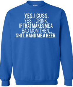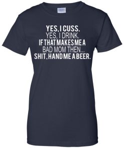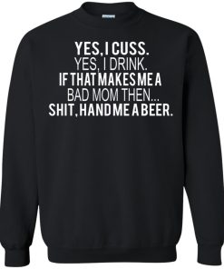 Yes I cuss yes I drink if that makes me a bad mom then shit hand me a beer shirt, tank, hoodie, long sleeve, sweatshirt