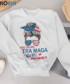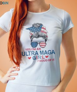 Show Off Your Patriotic Pride with this Ultra MAGA Girl Proud Of It USA Flag Messy Bun Shirt