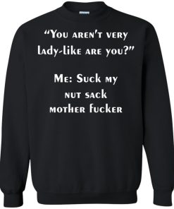 You aren’t very lady like are you me suck my nut sack mother fucker t shirt, tank, hoodie, long sleeve, sweatshirt