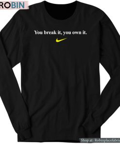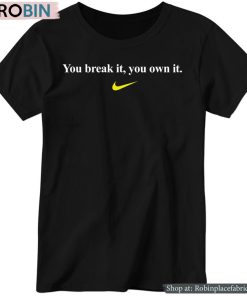The You Break It You Own It shirt is a bold and eye-catching design that features a powerful message about taking responsibility for your actions. The shirt is made of high-quality material and is available in a range of sizes to ensure a comfortable and flattering fit. It is perfect for making a statement and sparking conversations about accountability and ownership. The design is simple yet impactful, making it a versatile addition to any wardrobe. Wear it with pride and show the world that you are not afraid to own up to your mistakes.
