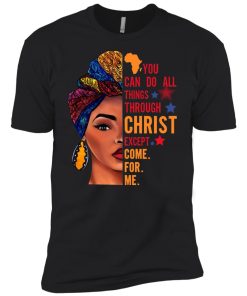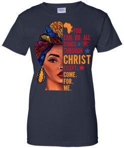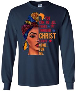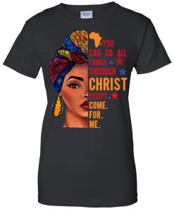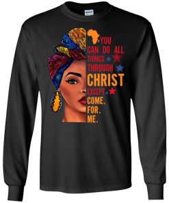 You can do all things through christ except come for me black version t shirt, long sleeve, hoodie
