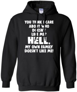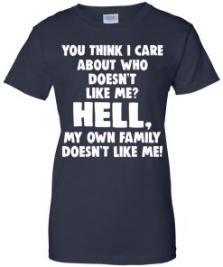 You think I care about who doesn’t like me hell my own family doesn’t like me shirt. T shirt, long sleeve, hoodie, vneck, tank top are available