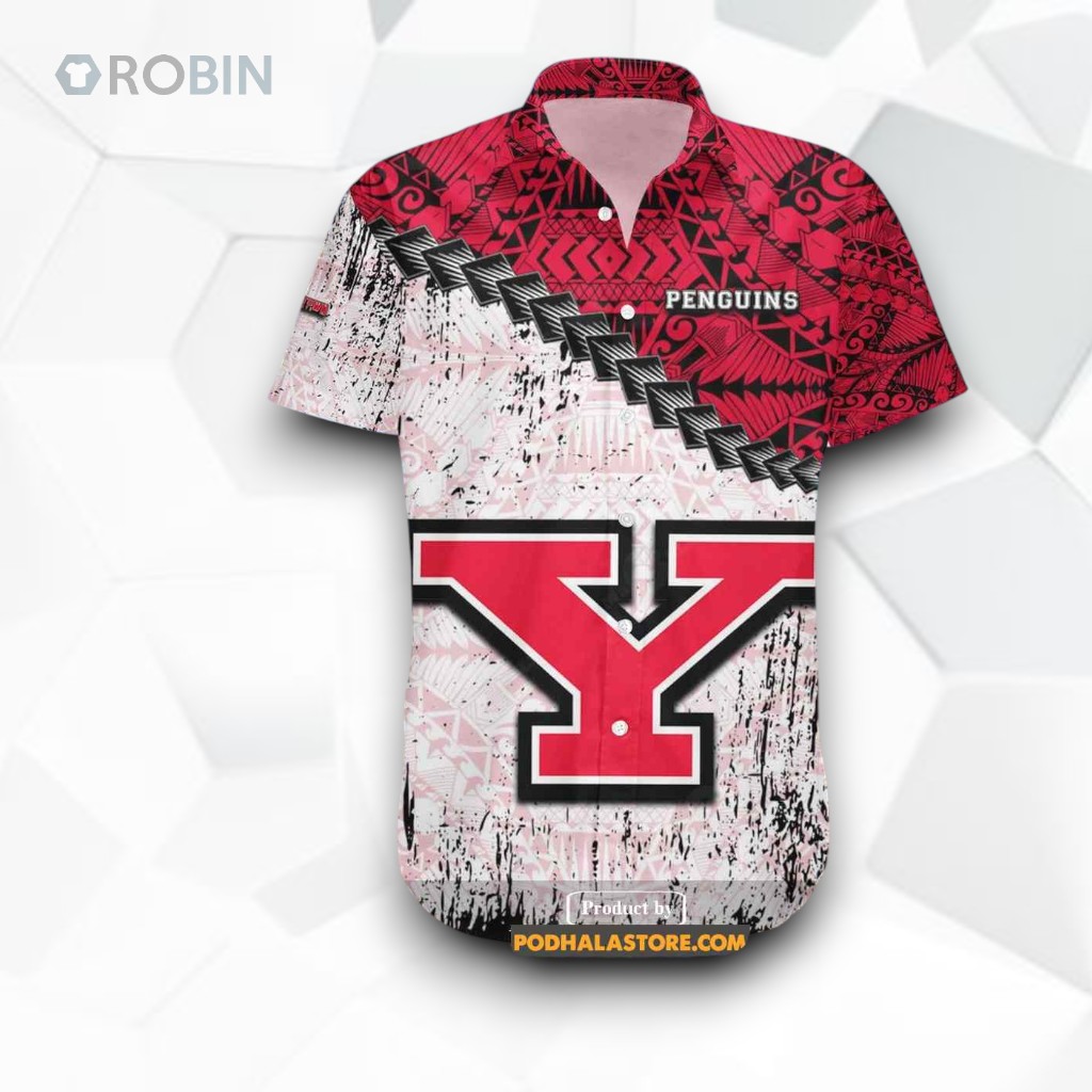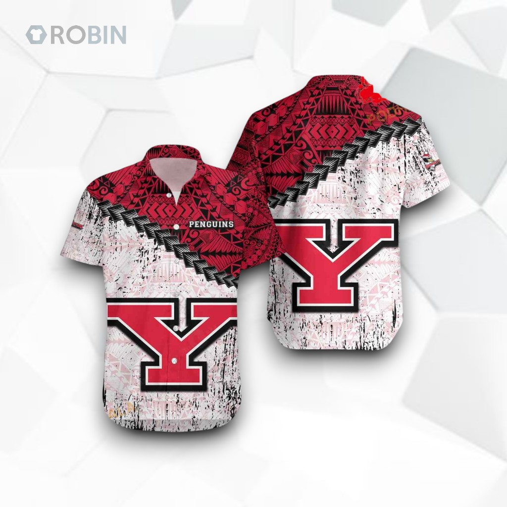 The bold red and white color scheme instantly commands attention, echoing the spirited energy of the Youngstown State Penguins. The large Y letter logo anchors the design with varsity pride, while the black diagonal chain pattern adds a gritty, almost rebellious texture reminiscent of rugged game-day grit. Tribal and tattoo motifs weave through the fabric, injecting a grunge Polynesian vibe that pushes beyond conventional fan gear, hinting at a fierce, edgy identity rather than a simple allegiance. This shirt pulls in the essence of the Penguins’ tenacity with stencil-style lettering and a small campus wordmark, subtly balancing the loud graphic elements with a nod to tradition. The distressed styling suggests an authentic, lived-in feel—like something that’s seen the highs and lows of a season alongside its owner. It’s the kind of piece that graduates, athletes, and hardcore fans alike would recognize as more than just clothing; it’s an emblem of belonging and stories shared. Craftsmanship isn’t about delicate finesse here, but rather an intentional boldness and structured layering that mirrors the toughness and bold spirit of the team. The layout feels purposefully chaotic yet controlled, with tribal tattoo influences flowing naturally around the centerpiece logo. This is a statement shirt, not just for wearing on game day, but for expressing an identity rooted in resilience and pride. Collectors and alumni might prize this Youngstown State Penguins shirt for its unique blend of culture and sport—making it a standout gift for those who appreciate edgy designs with genuine team spirit. It’s longevity lies not only in its style but in the way it connects to personal stories of fandom and community.