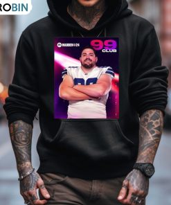 This Zack Martin Dallas Cowboys Madden 24 99 Club 2023 Shirt is a great way to show your appreciation and support for your favorite NFL team. This shirt features a sleek navy blue and silver color combination with the 13th overall pick in the 2014 NFL Draft, Zack Martin, in the center. The front of the shirt also has the Madden 24 99 Club logo. This shirt is perfect for wearing to Dallas Cowboys games or anytime you want to show your Cowboys pride. The shirt is made out of comfortable and breathable fabric, making it great for all day wear. This shirt is sure to make a great addition to any Cowboys fan's wardrobe.